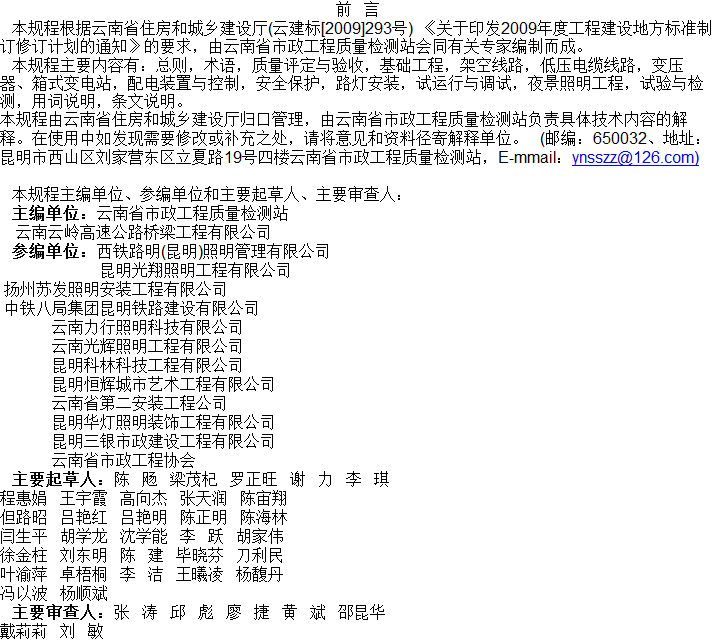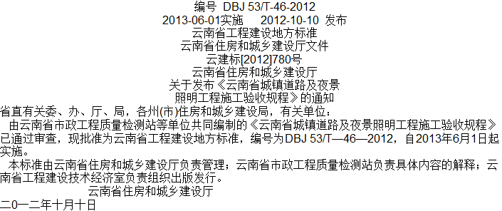 云南省城镇道路及夜景照明工程施工验收规程收藏