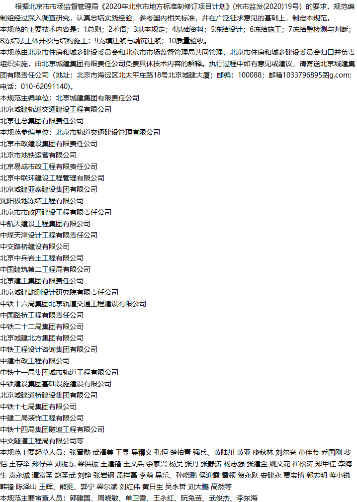 城市轨道交通工程冻结法施工技术规范收藏