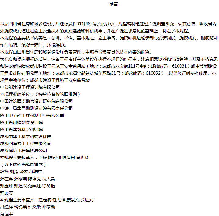 旋挖成孔灌注桩施工安全技术规程收藏