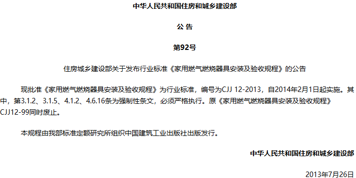 当前位置:首页 > 标准规范 > 家用燃气燃烧器具安装及验收规程 <返回