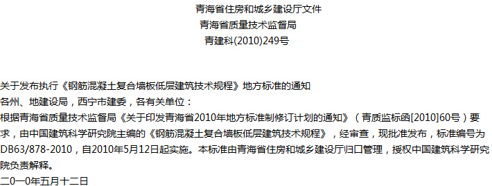钢筋混凝土复合墙板低层建筑技术规程收藏