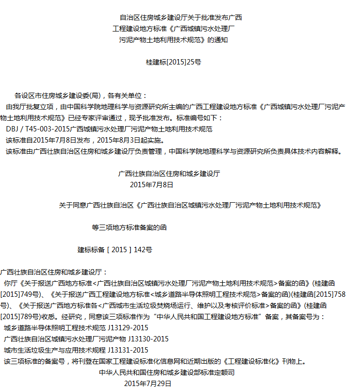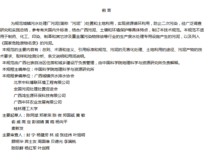 广西壮族自治区城镇污水处理厂 污泥产物土地利用技术规范收藏