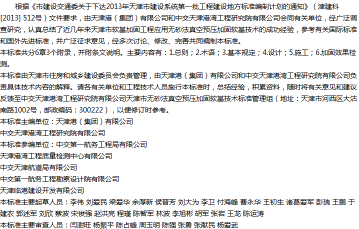 天津市无砂法真空预压加固软基技术标准收藏