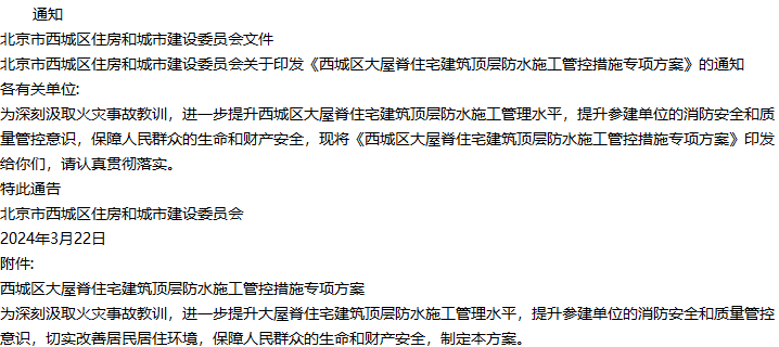 当前位置:首页 > 标准规范 > 西城区大屋脊住宅建筑顶层防水施工管控措施专项方案 <返回