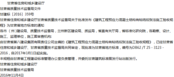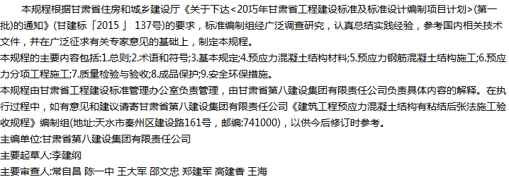 建筑工程预应力混凝土结构有粘结后张法施工验收规程收藏