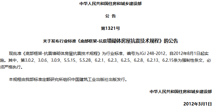 底部框架-抗震墙砌体房屋抗震技术规程收藏