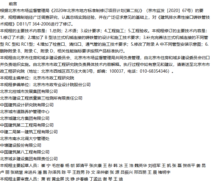 建筑排水柔性接口铸铁管管道工程技术规程收藏