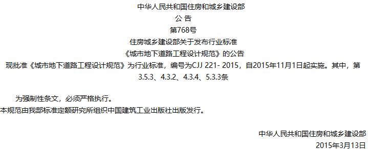 城市地下道路工程设计规范收藏