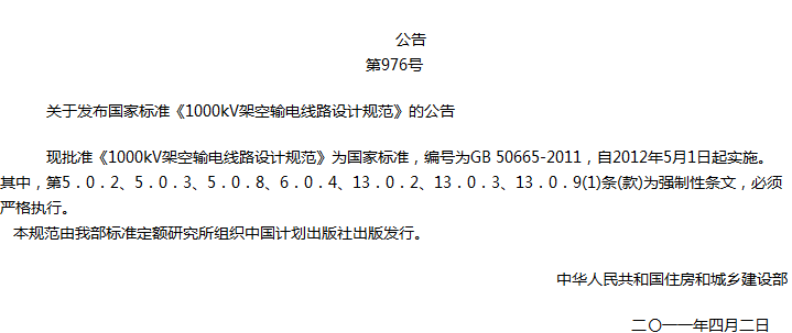 当前位置:首页 > 标准规范 > 1000kV架空输电线路设计规范 <返回