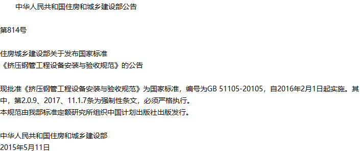 挤压钢管工程设备安装与验收规范收藏