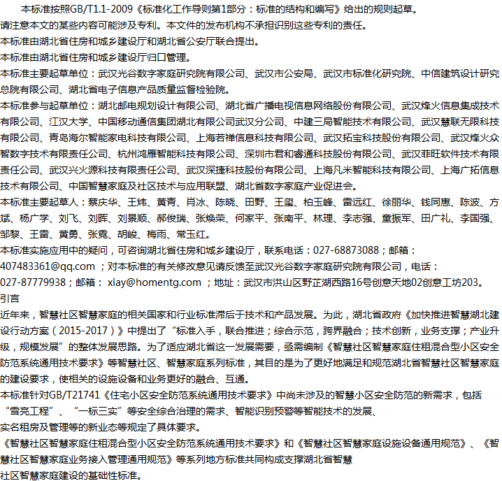 智慧社区智慧家庭住租混合型小区安全防范系统通用技术要求收藏