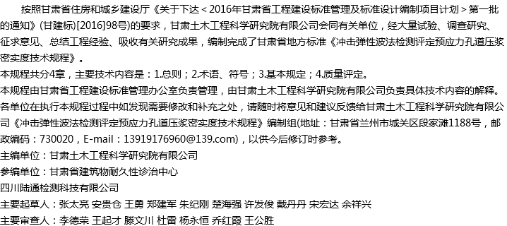 冲击弹性波法检测评定预应力孔道压浆密实度技术规程收藏