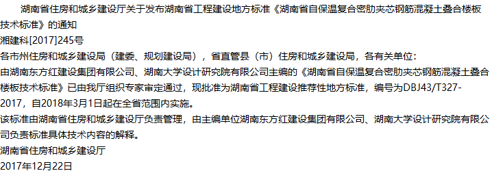 湖南省自保温复合密肋夹芯钢筋混凝土叠合楼板技术标准收藏