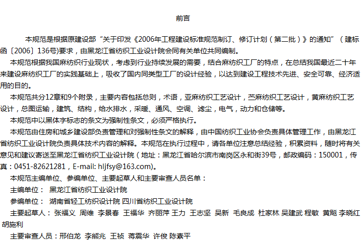 麻纺织工厂设计规范收藏