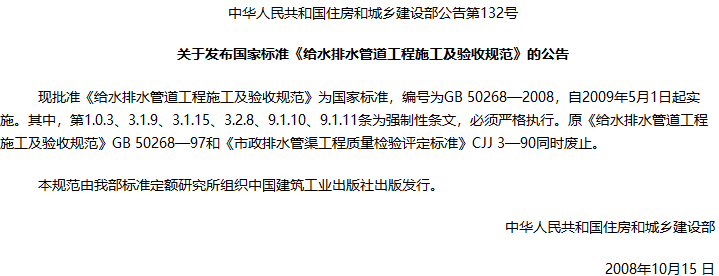 当前位置:首页 > 标准规范 > 给水排水管道工程施工及验收规范 <返回