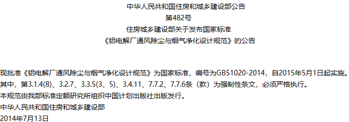 铝电解厂通风除尘与烟气净化设计规范收藏