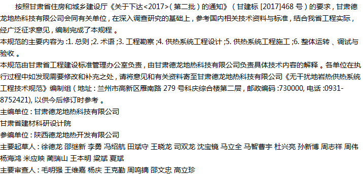 无干扰地岩热供热系统工程技术规范收藏