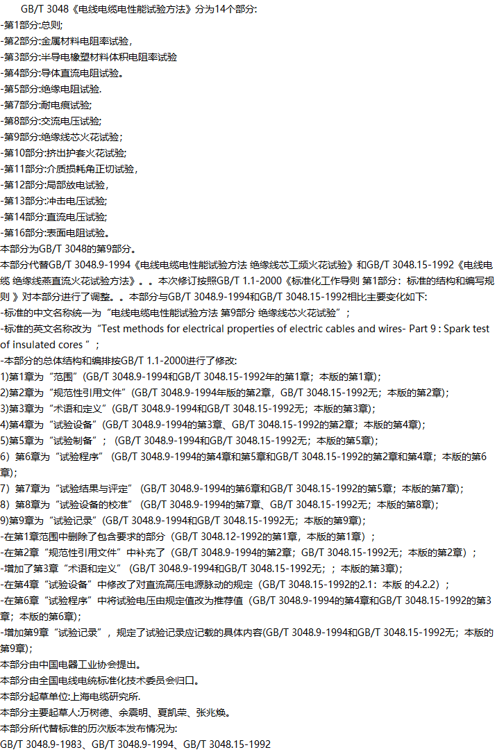 电线电缆电性能试验方法第9部分:绝缘线芯火花试验收藏