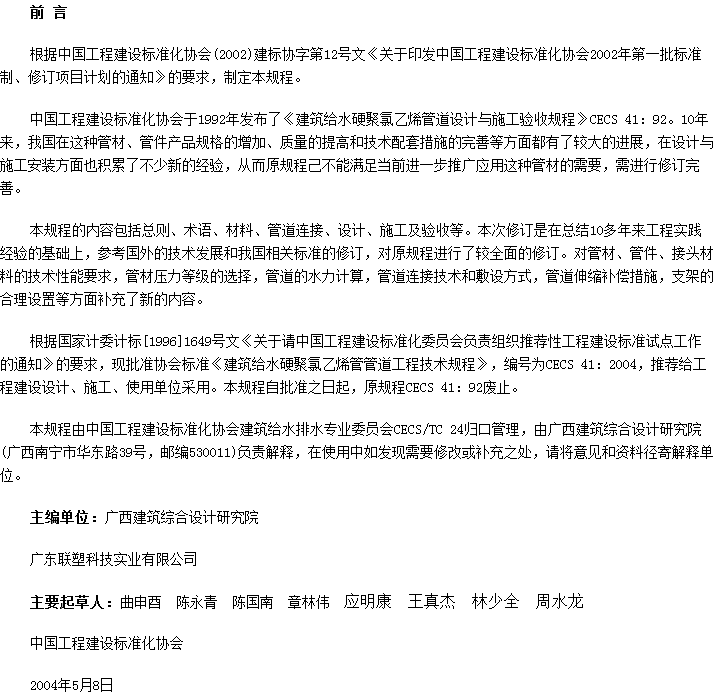 建筑给水硬聚氯乙烯管管道工程技术规程收藏