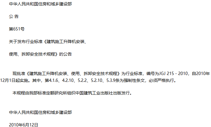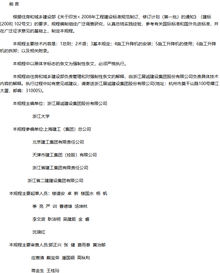 建筑施工升降机安装、使用、拆卸安全技术规程收藏