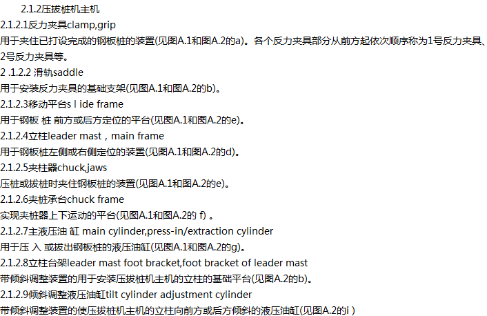 建筑施工机械与设备液压式钢板桩压拔桩机术语和商业规格收藏