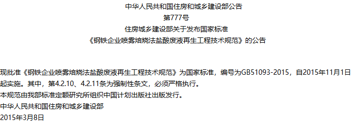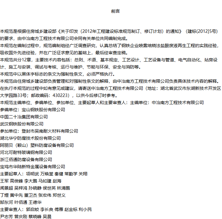 钢铁企业喷雾焙烧法盐酸废液再生工程技术规范收藏