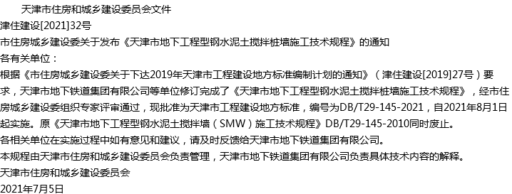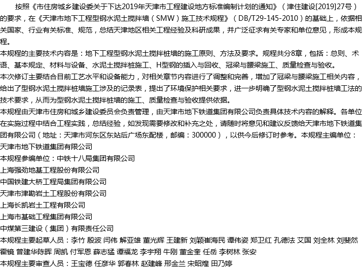 天津市地下工程型钢水泥土搅拌桩墙施工技术规程收藏