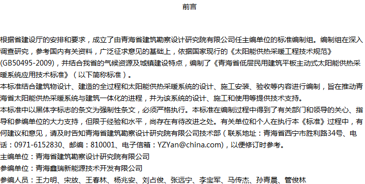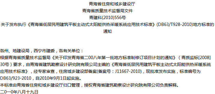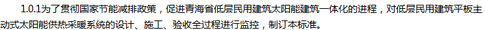 青海省低层民用建筑平板主动式太阳能供热采暖系统应用技术标准收藏