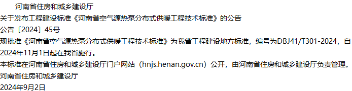 河南省空气源热泵分布式供暖工程技术标准收藏