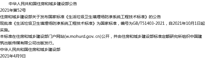 生活垃圾卫生填埋场防渗系统工程技术标准收藏
