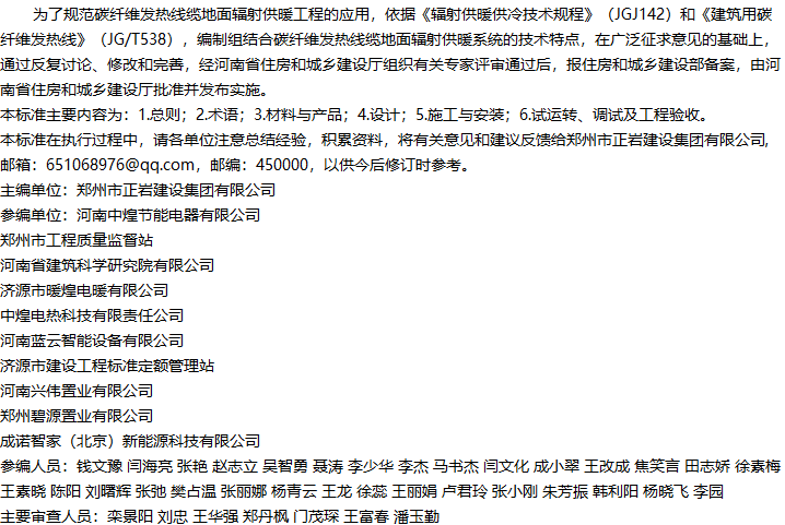 碳纤维发热线缆地面辐射供暖技术标准收藏
