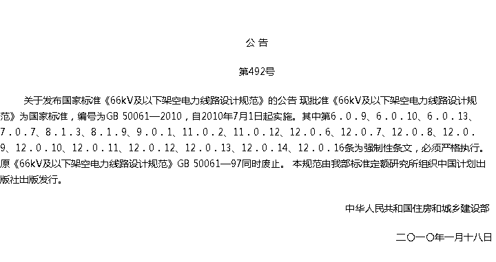 66kv及以下架空电力线路设计规范收藏