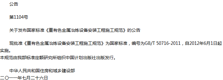 重有色金属冶炼设备安装工程施工规范收藏