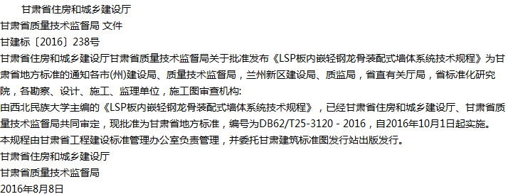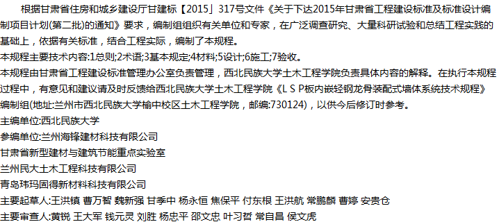 LSP板内嵌轻钢龙骨装配式墙体系统技术规程收藏