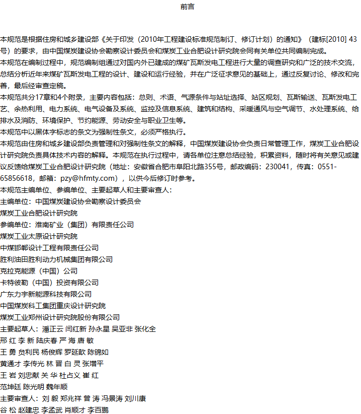 煤矿瓦斯发电工程设计规范收藏