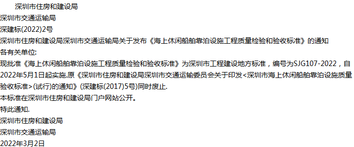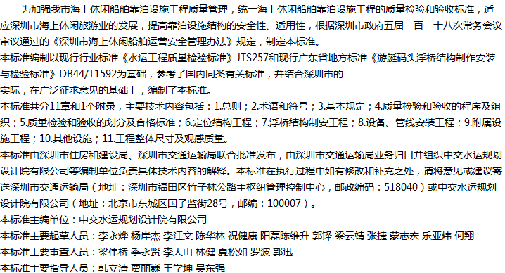 海上休闲船舶靠泊设施工程质量检验和验收标准收藏