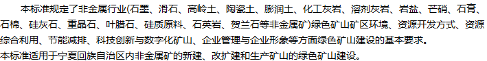 当前位置:首页 > 标准规范 > 宁夏非金属矿绿色矿山建设规范 <返回