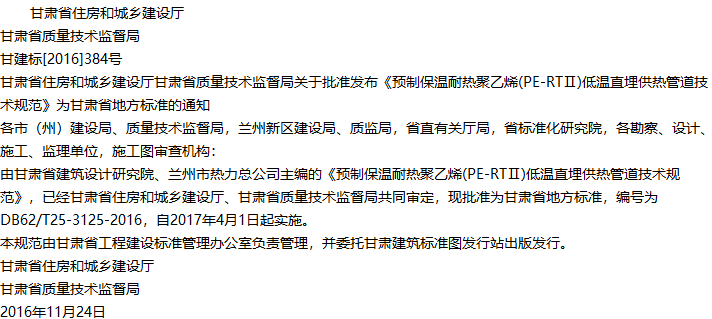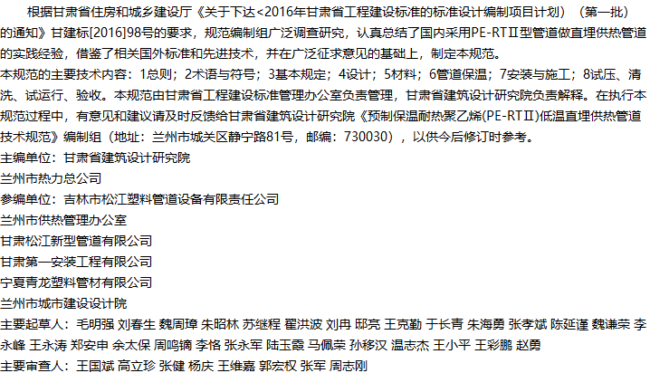 预制保温耐热聚乙烯(PE-RTⅡ)低温直埋供热管道技术规范收藏