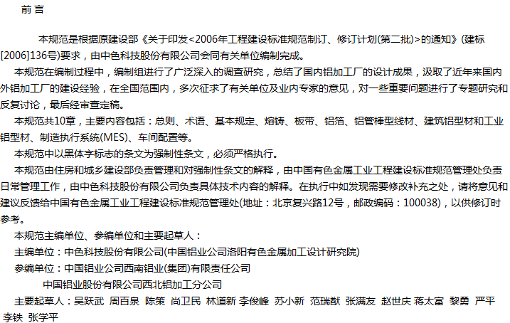 铝加工厂工艺设计规范收藏