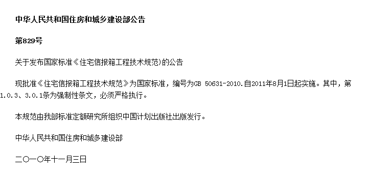 住宅信报箱工程技术规范收藏