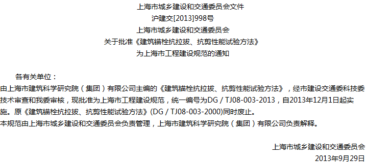 建筑锚栓抗拉拔、抗剪性能试验方法收藏