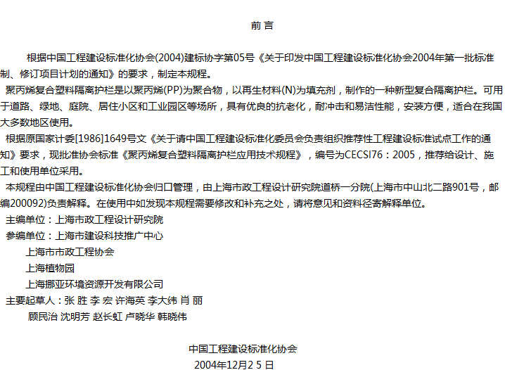 聚丙烯复合塑料隔离护栏 应用技术规程收藏