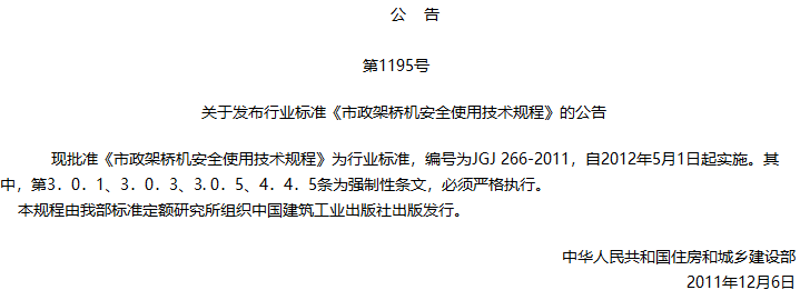 市政架桥机安全使用技术规程收藏