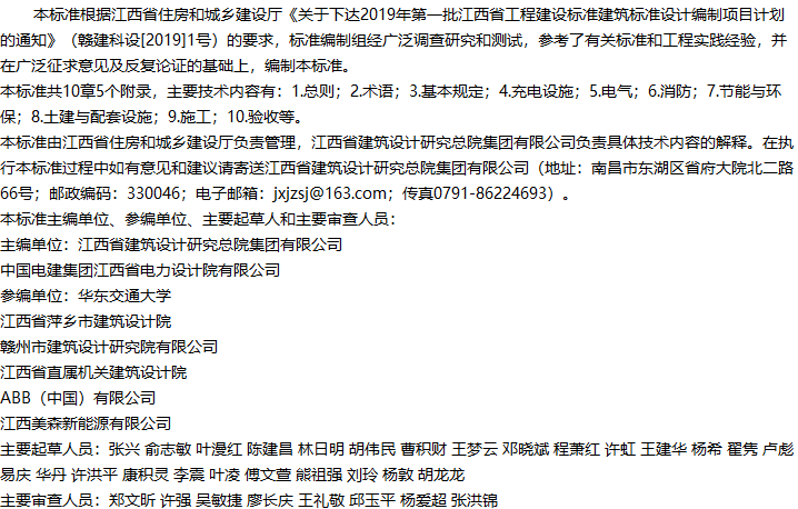 江西省电动汽车充电设施建设技术标准收藏