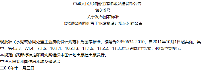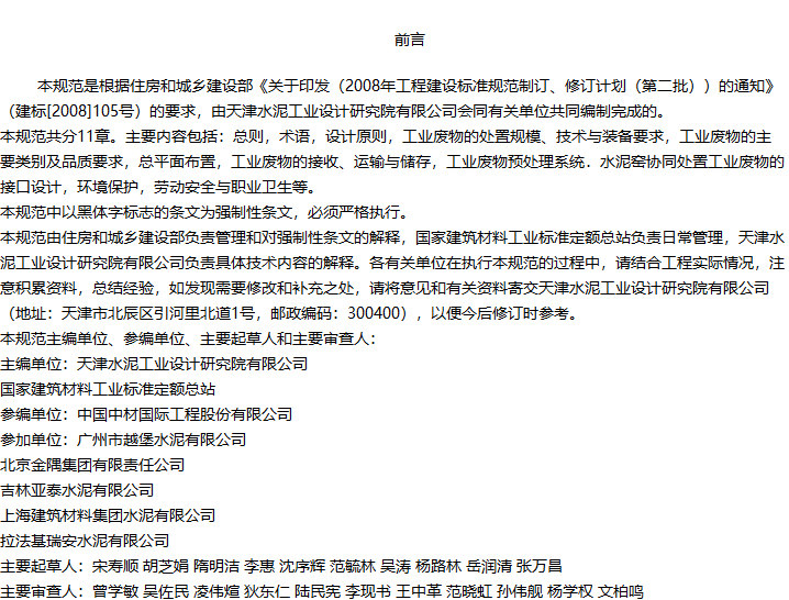 水泥窑协同处置工业废物设计规范收藏