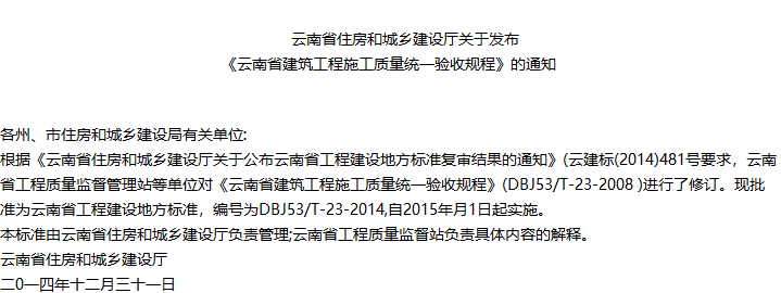 云南省建筑工程施工质量验收统一规程收藏