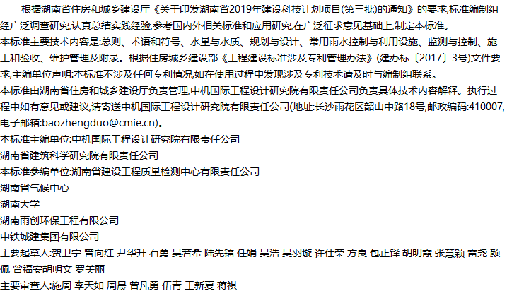 湖南省雨水控制与利用工程技术标准收藏