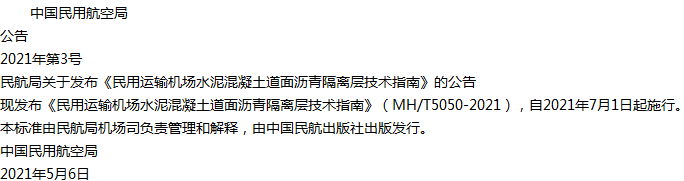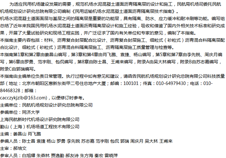 民用运输机场水泥混凝土道面沥青隔离层技术指南收藏