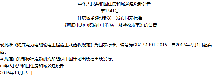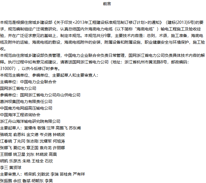 海底电力电缆输电工程施工及验收规范收藏
