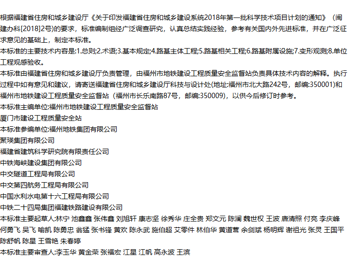 福建省城市轨道交通路基工程施工质量验收标准收藏